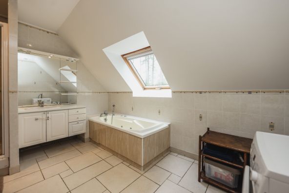 À l’étage, un second salon tout aussi spacieux et lumineux permet de créer un espace de vie indépendant. Vous y trouverez également une cuisine séparée, trois chambres et une salle de bain.